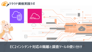 SCS試験では「フォレンジクス調査において適切な手順はどれか」という問いで、「侵害されたインスタンスに直接ログインして調査する」ではなくスナップショットを取得して別環境で分析するという点が問われます。また、フォレンジクス専用アカウントへのコピーが推奨される理由(証拠保全・改ざん防止)も押さえておきましょう。