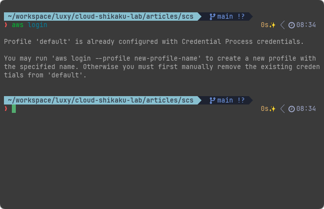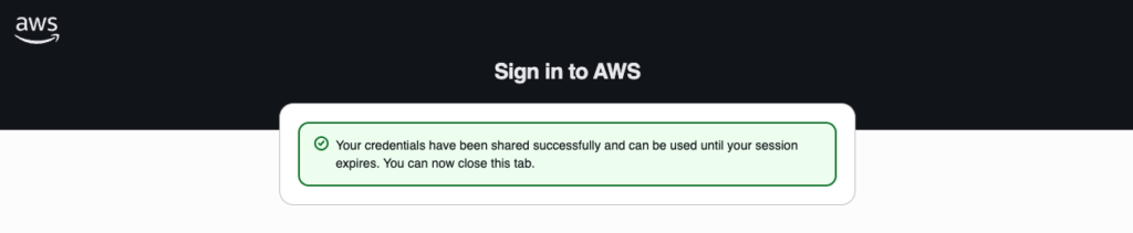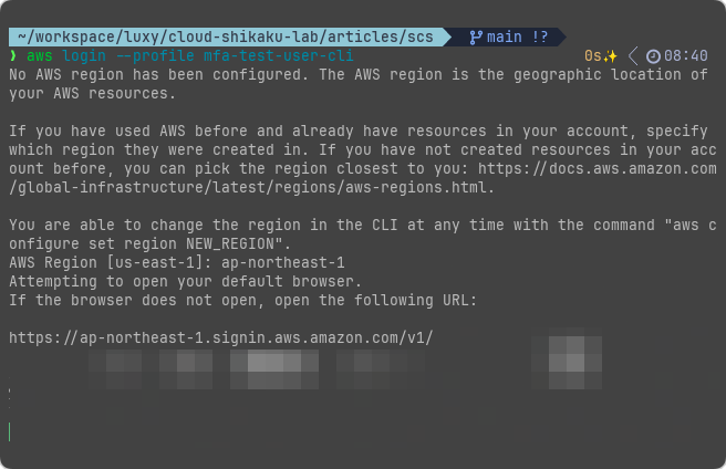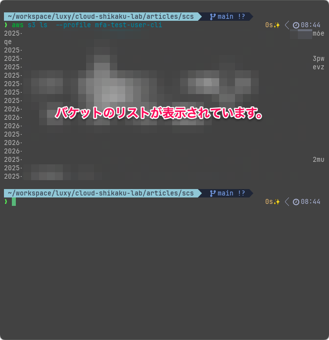 認証が完了すると、CLIが自動的にMFA認証済みの一時認証情報を使用できる状態になります。