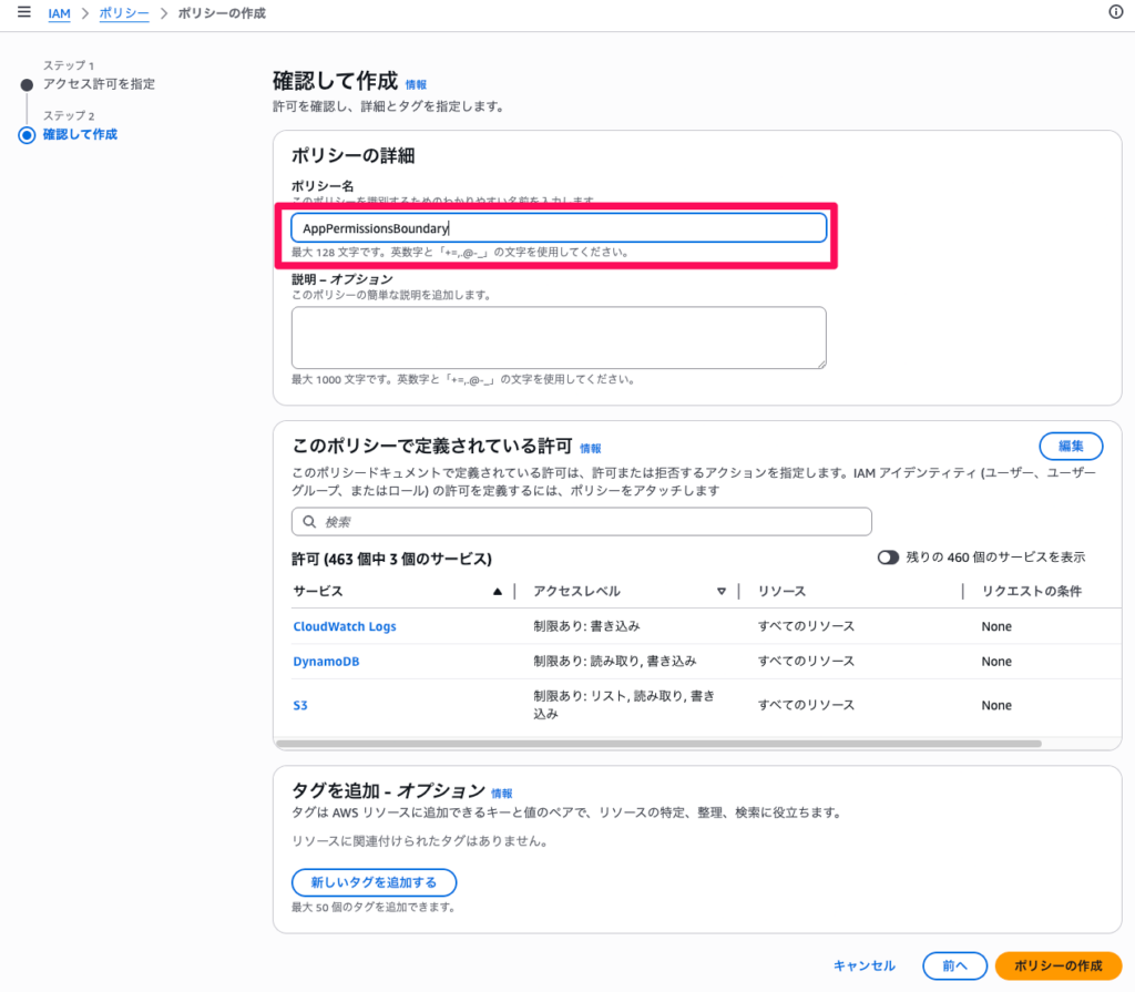 ステップ1: Permissions Boundaryポリシーの作成